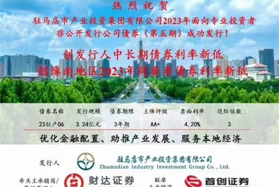 喜訊!市產(chǎn)業(yè)集團(tuán)債券發(fā)行利率再創(chuàng)新低