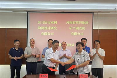 與河南省第四地質(zhì)礦產(chǎn)調(diào)查院有限公司舉行戰(zhàn)略合作簽約儀式8月22日,駐馬店市水利勘測(cè)設(shè)計(jì)研究有限公司與河南省第四地質(zhì)礦產(chǎn)調(diào)查院有限公司舉行戰(zhàn)略合作簽約儀式;河南省第四地質(zhì)礦產(chǎn)調(diào)查院有限公司黨委書(shū)記、董事長(zhǎng)趙熠,駐馬店市水利勘測(cè)設(shè)計(jì)研究有限公司黨委副書(shū)記、總經(jīng)理李慧參加簽約儀式。 趙熠對(duì)駐馬店市水利勘測(cè)設(shè)計(jì)研究有…